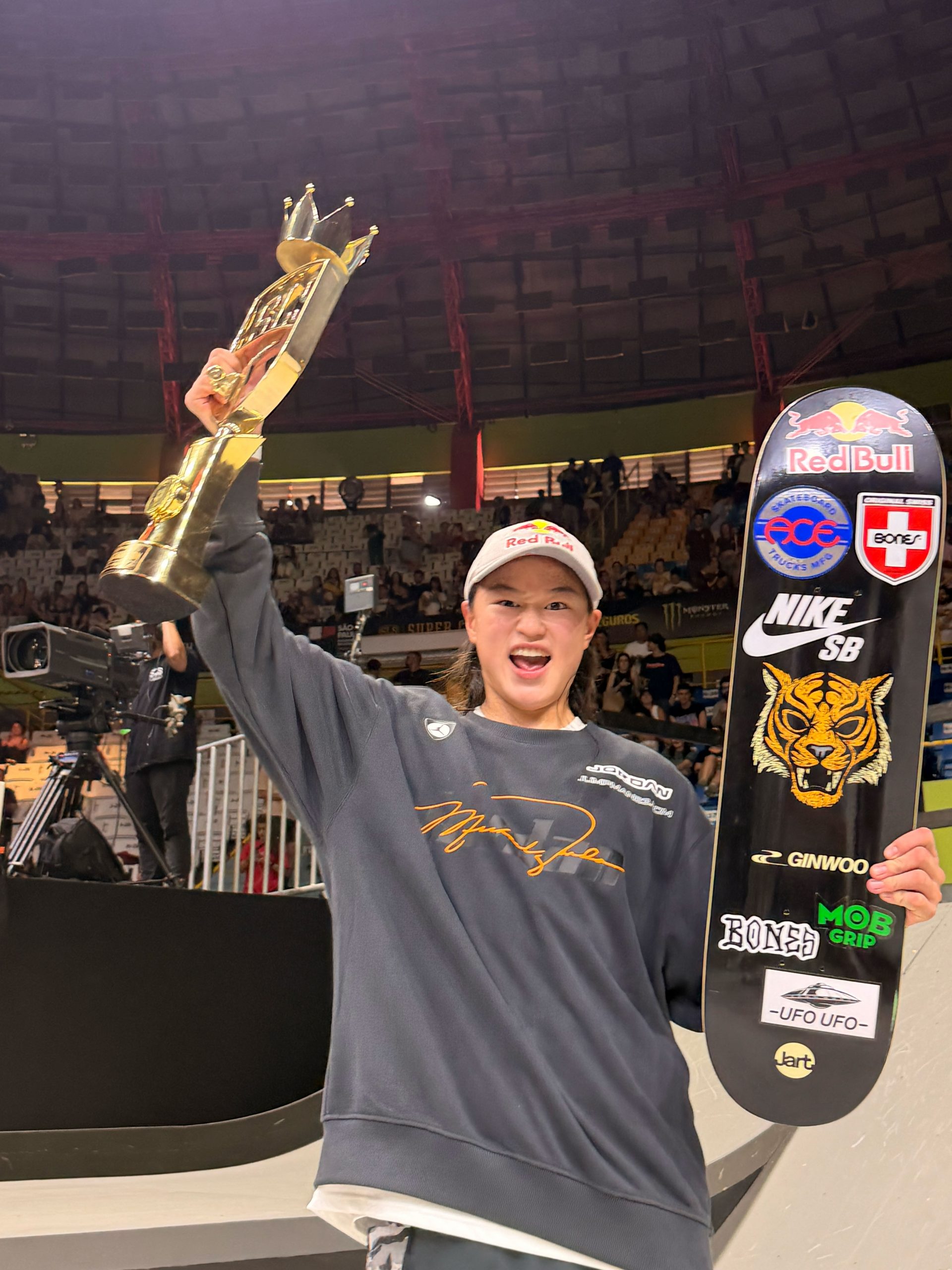 Last weekend, at just 15 years old, Ginwoo made history by winning the SLS Super Crown in Brazil, proving he’s not just the future of skateboarding — he’s already one of the best doing it.